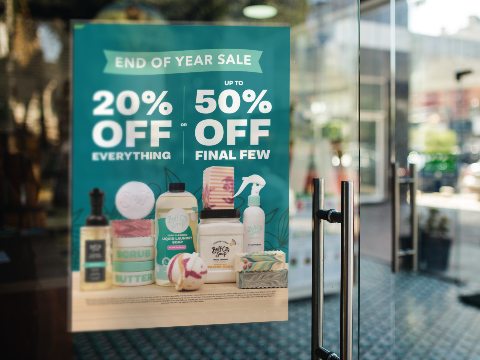I designed a wide variety of multi-format signage for Buff City Soap retail locations nationwide for 2024. Projects included everything from window signage, product details, table top signs, and large-scale in-store displays to seasonal signage kits distributed across corporate and franchise stores. I ensured every piece aligned with the brand’s vibrant aesthetic and messaging guidelines while adapting designs for various store formats and regional needs.